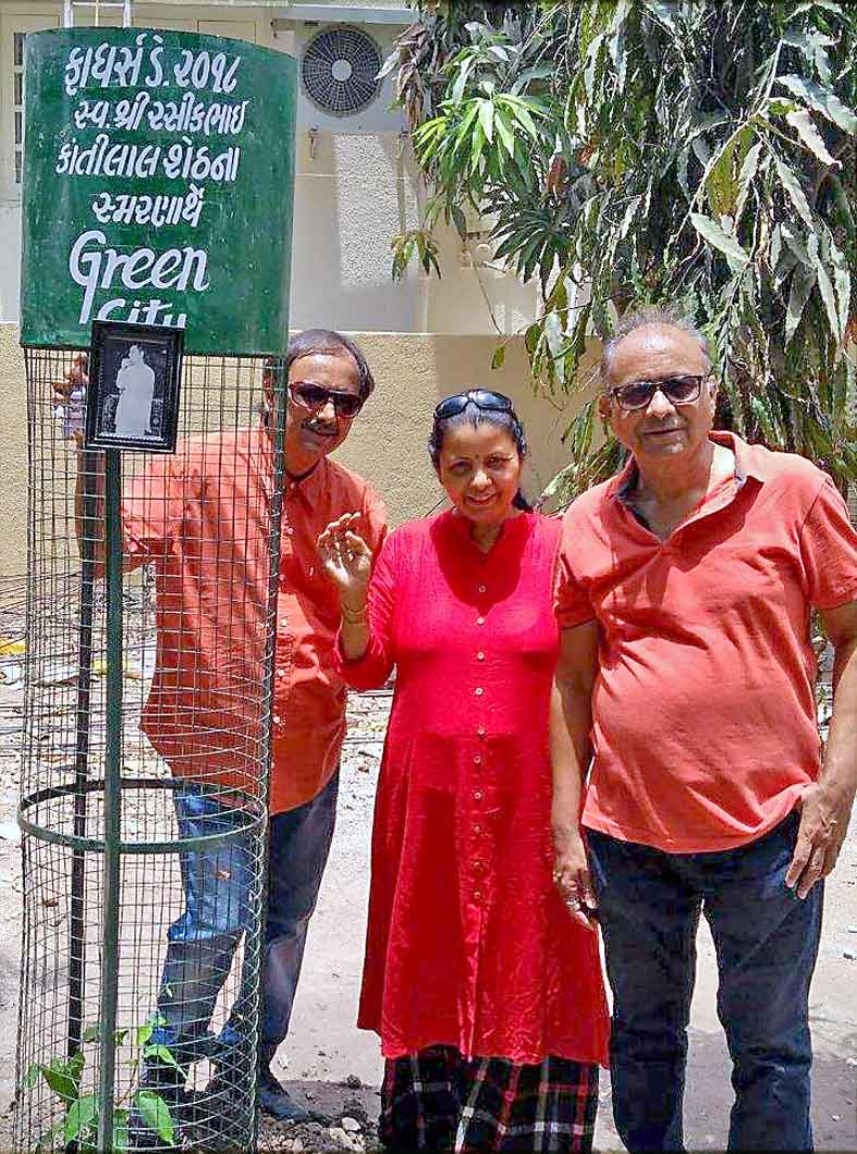 રવિવારે ફાધર્સ-ડે નિમિત્તે ગ્રીનસીટીના દેવેનભાઈ શેઠ, કમલેશભાઈ શેઠ તથા તેમની બહેન કૌશીકાબેન મહેતા દ્વારા તેમના સ્વર્ગીય પિતા રસીકભાઈ કાંતિલાલ શેઠના સ્મરણાર્થે તિલકનગરમાં આવેલ મહાદેવજીનું મંદિર અંજલેશ્વર મહાદેવ ખાતે મહાદેવજીને પ્રિય એવું બીલ્લીના વૃક્ષનું વૃક્ષારોપણ કરવામાં આવ્યું હતું. દેવેનભાઈ શેઠએ લોકોને અપીલ કરી છે કે દર વર્ષે ફાધર્સ-ડે, મધર્સ-ડે તેમજ પોતાના સ્વર્ગીય માતા-પિતાના સ્મરણાર્થે લોકો વૃક્ષારોપણ કરી તેની યથાર્થ ઉજવણી કરે.
