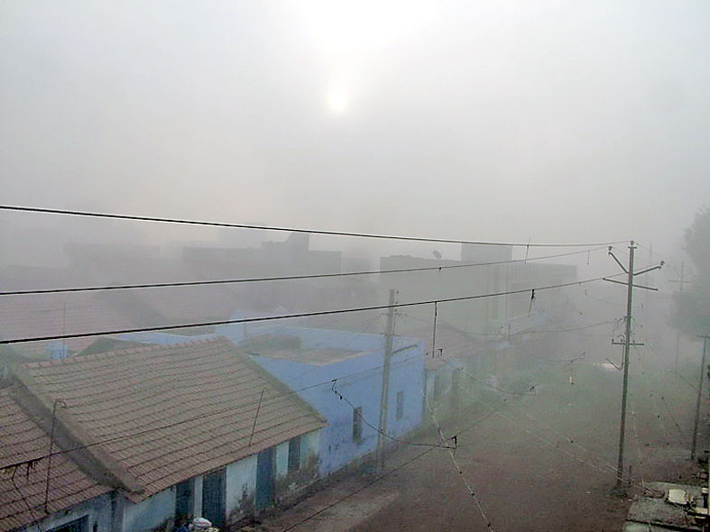 શહેરના મોટાભાગના વિસ્તારોમાં વહેલી પરોઢે અને મોડીરાત્રે પ્રદુષિત હવાનું ગાઢ આવરણ છવાઈ જતા લોકોમાં ચિંતા પ્રસરી જવા પામી છે.