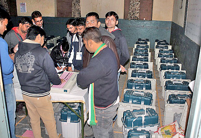 તેમ જણાવી દેતાં હવે પચી બાકીની બીજાનું ચેકિંગ કરીશુંનું કહેતા કોંગ્રેસે પ્રતિનિધિએ રાવપુરા બેઠકનાં કોંગ્રેસી ઉમેદવાર ચંદ્રકાંત ભથ્થુનું ધ્યાન દોરતાં તેઓ જાતે સ્થળ પર પહોંચી જતાં કોંગ્રેસી કાર્યકરોએ ભારે હોબાળો મચાવ્યો હતો. આથી મામલો રિટર્નિગ ઓફિસર આર.પી. જોષી સુધી પહોંચતા તેમણે કોંગ્રેસની રજૂઆતને ગ્રાહય રાખી જે ૧૫૦ ઈવીએમની ચકાસણી કોંગ્રેસના પ્રતિનિધિઓની ગેરહાજરીમાં કરી દેવાઈ હતી. તેની ફરી ચકાસણી કરાવ્યાની સૂચના આપી છે. આથી કોંગ્રેસના પ્રતિનિધિઓ તેમજ ચૂંટણી વિભાગનાં ટેકનિકલ તજજ્ઞાોની હાજરીમાં ઈવીએમ મશીનોની ફરીથી ચકાસણી શરૃ કરાઈ હતી. જે સાંજે પાંચ વાગ્યા સુધી ચાલુ રહી હતી. ૨૧૦ ઈવીએમની ચકાસણી કરવામાં આવી જે પૈકી ૧૧ ઈવીએમમાં ટેકનિકલ ખામી જણાઈ આવતાં કોંગ્રેસ દ્વારા તે બદલી નવા મુકવા માંગણી કરાઈ હતી. જ્યારે બાકી રહેલા ૪૬ ઈવીએમની ચકાસણી આવતીકાલે કરવામાં આવશે તેમ જાણવા મળે છે. રિટર્નિગ ઓફિસરે ૧૧ ઈવીએમ બદલવાની ખાત્રી આપી હતી.
