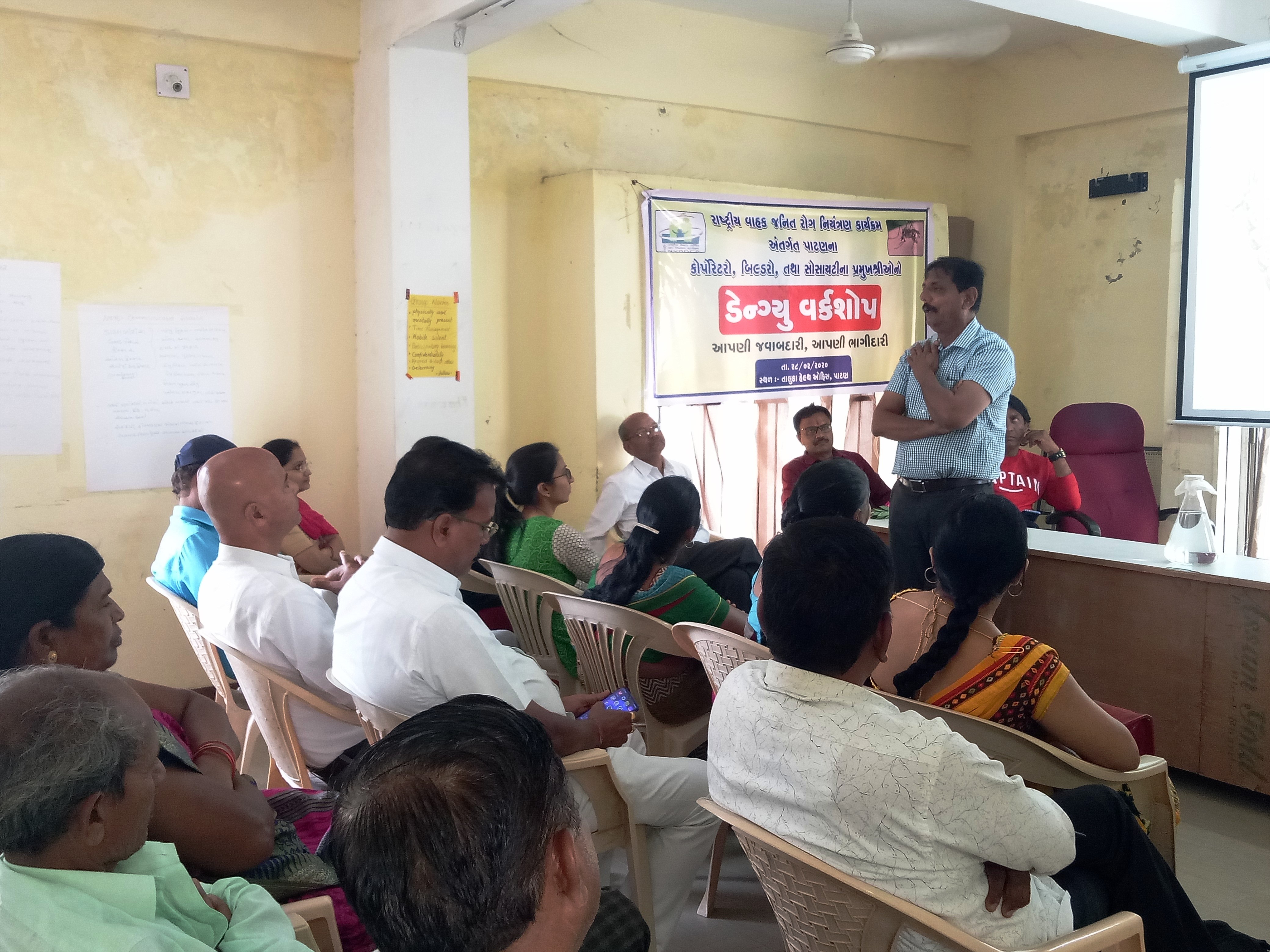 ગત વર્ષ પાટણ શહેરમાં મોટા પ્રમાણમાં ડેન્ગ્યુના કેસ નોંધાયા હતા જેને ધ્યાને લઈ આગામી સમયમાં ડેન્ગ્યુનો રોગચાળો ન ફેલાય તેની જનજાગૃતિ અર્થે પાટણ બ્લોક હેલ્થ ઓફીસ ખાતે ડેન્ગ્યુ અંગેનો વર્કશોપ યોજવામાં આવ્યો. આ વર્કશોપમાં બ્લોક હેલ્થ ઓફીસરશ્રી ડૉ. ગૌરાંગ પરમાર તથા જિલ્લા મેલેરીયા અધિકારીશ્રી સનત જોષી દ્વારા મેલેરીયા, ડેન્ગ્યુ તથા ચિકુનગુનિયા જેવા વાહકજન્ય રોગો તથા ટી.બી. અંગે વિસ્તૃત જાણકારી, તેની અટકાયત માટેના પગલા તેમજ નગરપાલિકા દ્વારા કરવાની થતી કામગીરી અંગે પ્રેઝન્ટેશન રજૂ કરી વિસ્તૃત માર્ગદર્શન આપવામાં આવ્યું હતું. સાથે સાથે ડૉ.પી.આઇ.પટેલ દ્વારા ટીબી અંગેની તથા ડૉ.આર.ટી.પટેલ દ્વારા ક્લોરીનેશન કરવા તથા કોરોના વાયરસ બાબતે માહિતી આપવામાં આવી હતી. આ વર્કશોપમાં પાટણ નગરપાલિકાના પ્રમુખશ્રી મહેન્દ્રભાઇ પટેલ, ચીફ ઓફીસરશ્રી પાંચાભાઇ માળી, નગરપાલિકાના કોર્પોરેટરશ્રીઓ, શહેરના કાર્યરત બિલ્ડર્સ, વિવિધ સોસાયટીઝના પ્રમુખશ્રીઓ તેમજ આસપાસના ગામના સરપંચશ્રીઓ હાજર રહ્યા હતા. આરોગ્ય તંત્ર દ્વારા ઉપસ્થિત સૌને તેઓના વિસ્તારમાં રોગચાળા અટકાયતની કામગીરી બાબતે વધુમાં વધુ પ્રચાર-પ્રસાર કરી અટકાયતી પગલા લેવા અનુરોધ કરવામાં આવ્યો હતો.