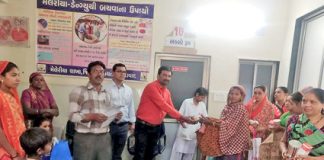 સગર્ભા માતાઓને પ્રોટીન પાવડરના ડબાનું વિતરણ